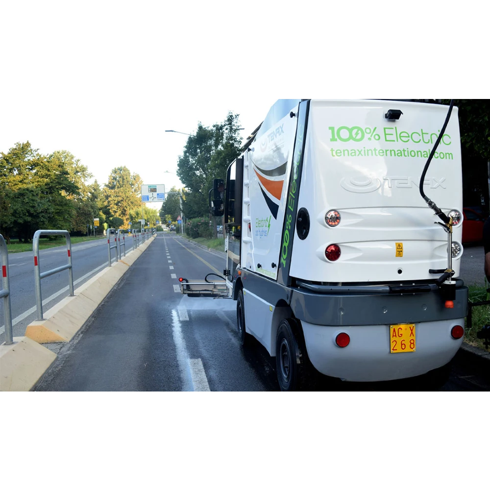 A lavadora de estrada Tenax Electra 2.0 Hydro é 100% elétrica, potente e ecológica, ideal para limpeza urbana e industrial.